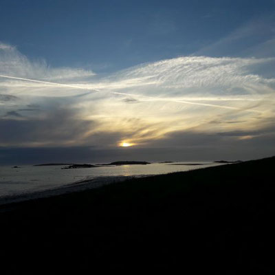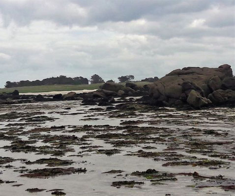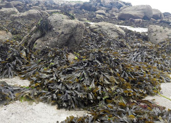Diese urtümliche Ecke der Nord-Finisterre gefällt uns auch sehr gut. Es ist wilder. Am Aber Wrac'h erlebt man die Gezeiten sehr stark. Sieht man bei Flut viele kleine Inseln, kann man an nächsten Vormittag kilometerlange Spaziergänge am Strand zu diesen kleinen Inseln machen. Stundenlange kann man durch seichtes Wasser waten. Ganz speziell sind auch die vielen, riesigen "Algenbänke". Hier werden Algen für alles möglich gesammelt. Die Bretagne gilt als Nummer Eins in der Algenernte.