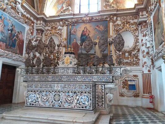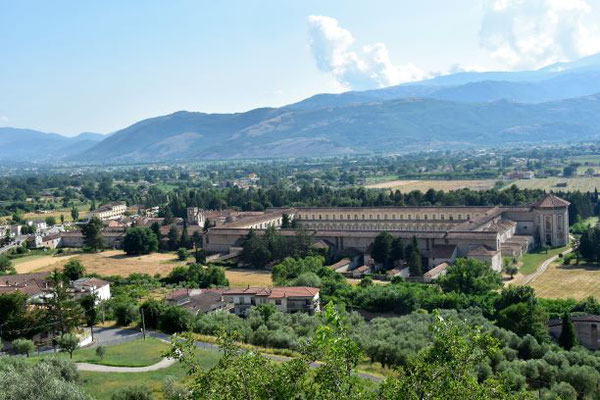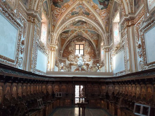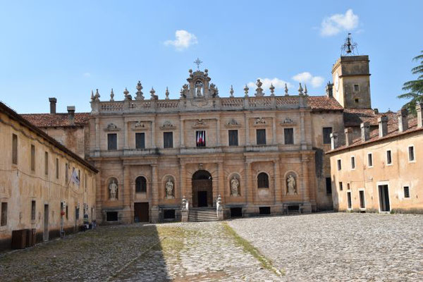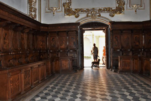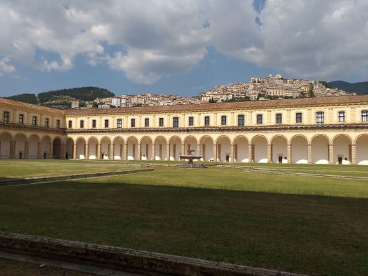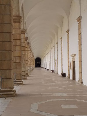 In der heissesten Zeit fahren wir im kühlen VW Bus über den Berg ins Valle Diano nach Padula, um uns die berühmte Kartause (Certosa di Padula) anzuschauen. Es ist eine von Europas grössten Klosteranlagen und UNESCO-Weltkulturerbe. Grosszügigerweise darf Gian an kurzer Leine mitlaufen, so dass wir uns einen Audioguide kaufen und zu dritt durch die riesige Anlage schlendern und uns die Räume jeweils in einem kurzen Trailer erklären lassen. Neben dem eindrücklichen Ort geniessen wir auch die angenehmen Temperaturen hinter diesen dicken Mauern.