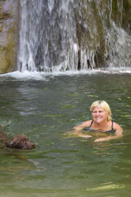 Wir waschen wieder mal, spielen, lesen, kochen und wir googeln die Berge ab für einen nächsten Aufenthalt und finden den Camping Le Sorgenti im Toskanischen Appenin, im Hochland des Senio im Mugello. Bei diesen Temperaturen ist der Name verheissungsvoll. Tatsächlich auf dem Camping von Oliver und Gemma stürzt sich ein kleiner Wasserfall und fliesst als Bach mittendurch. Eiskalt und soooo wohltuend. Der Empfang ist sehr herzlich. Ein paar Holländer sonst vor allem Seniorinnen und Senioren aus Imola, die der Stadthitze entfliehen und bis September hier ihre Bungalows beziehen. Wohl dank ihnen kocht Nonna Anna mittwochs Lasagne, Crépes ai quattro formaggi, un insalata mista e macedonia. Für 10 Euro sitzen wir an einer Tavolata und hören von links und rechts Geschichten von Enkelkindern... auch das ist Italien!